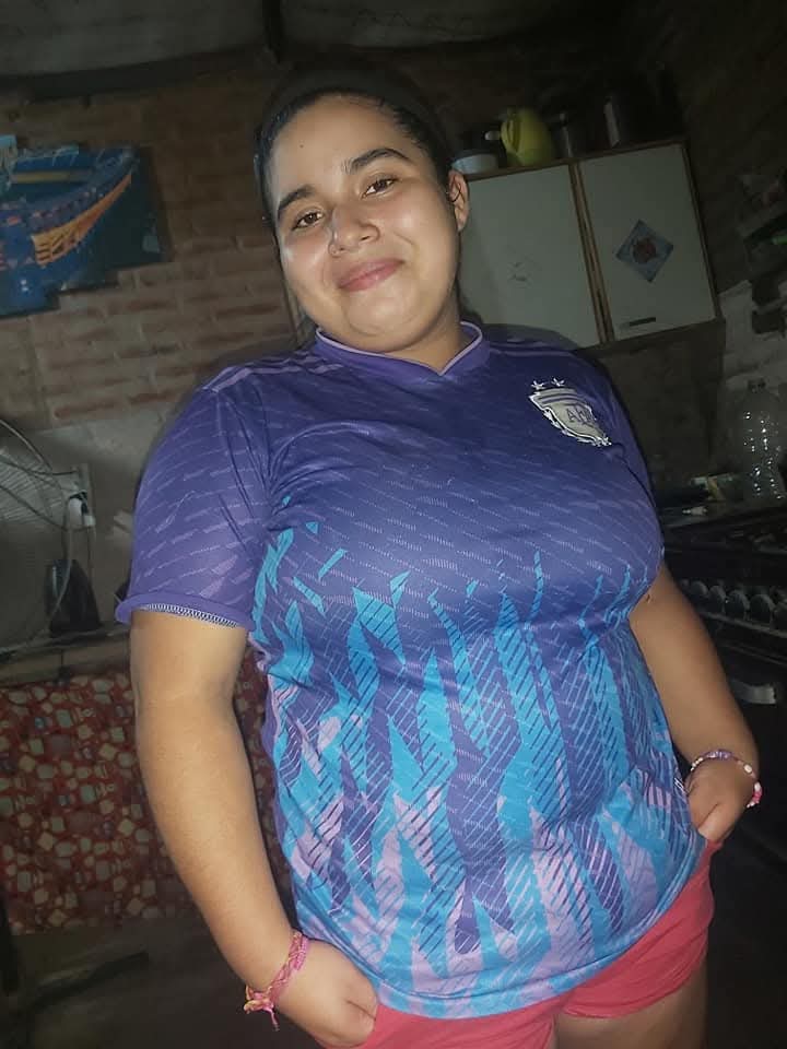 Vestimenta al momento de la Desaparicion: jeans de color azul claro, remera de color blanca con el logo escolar y zapatillas de color marron claro